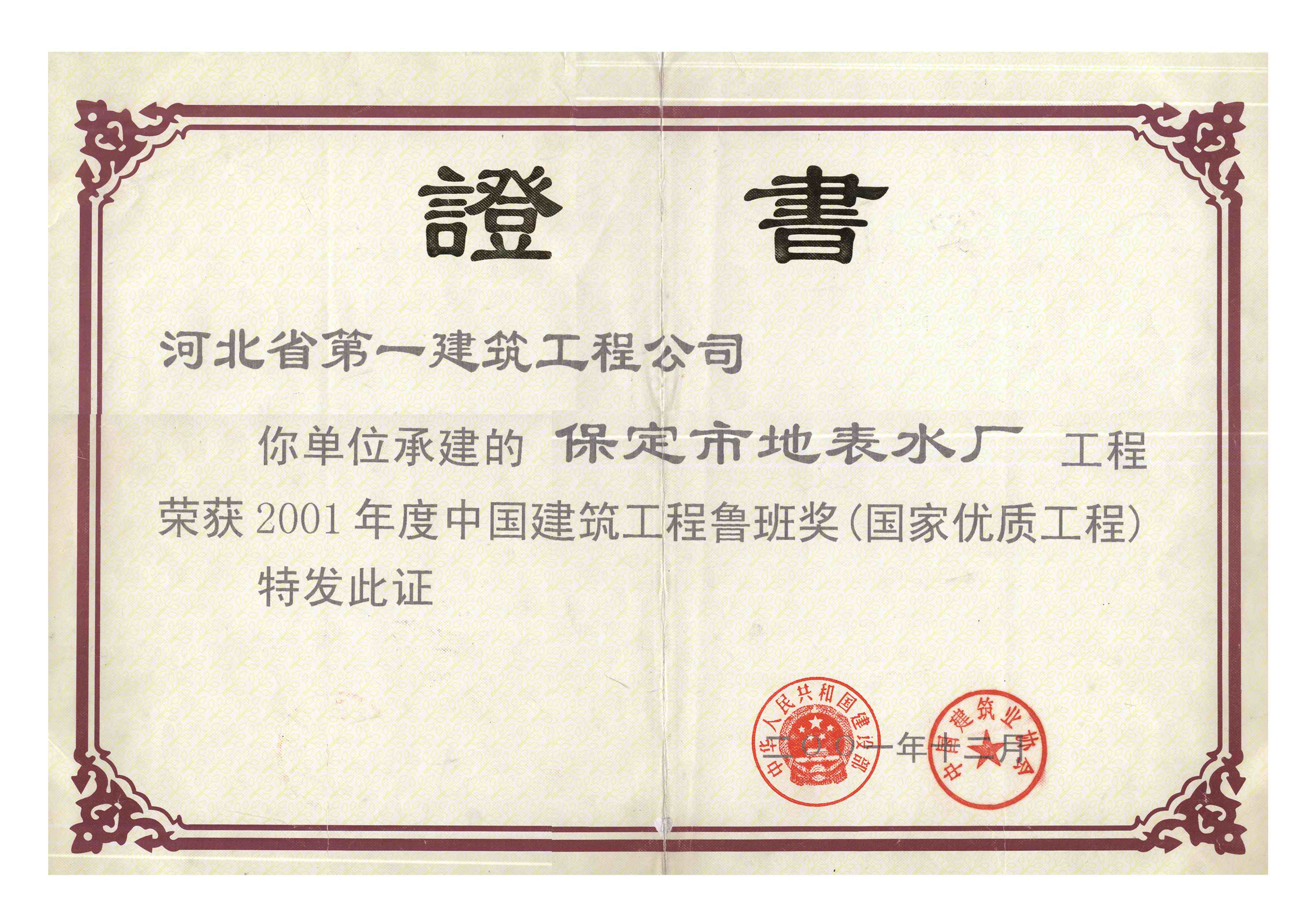 2001年保定市地表水廠(chǎng)