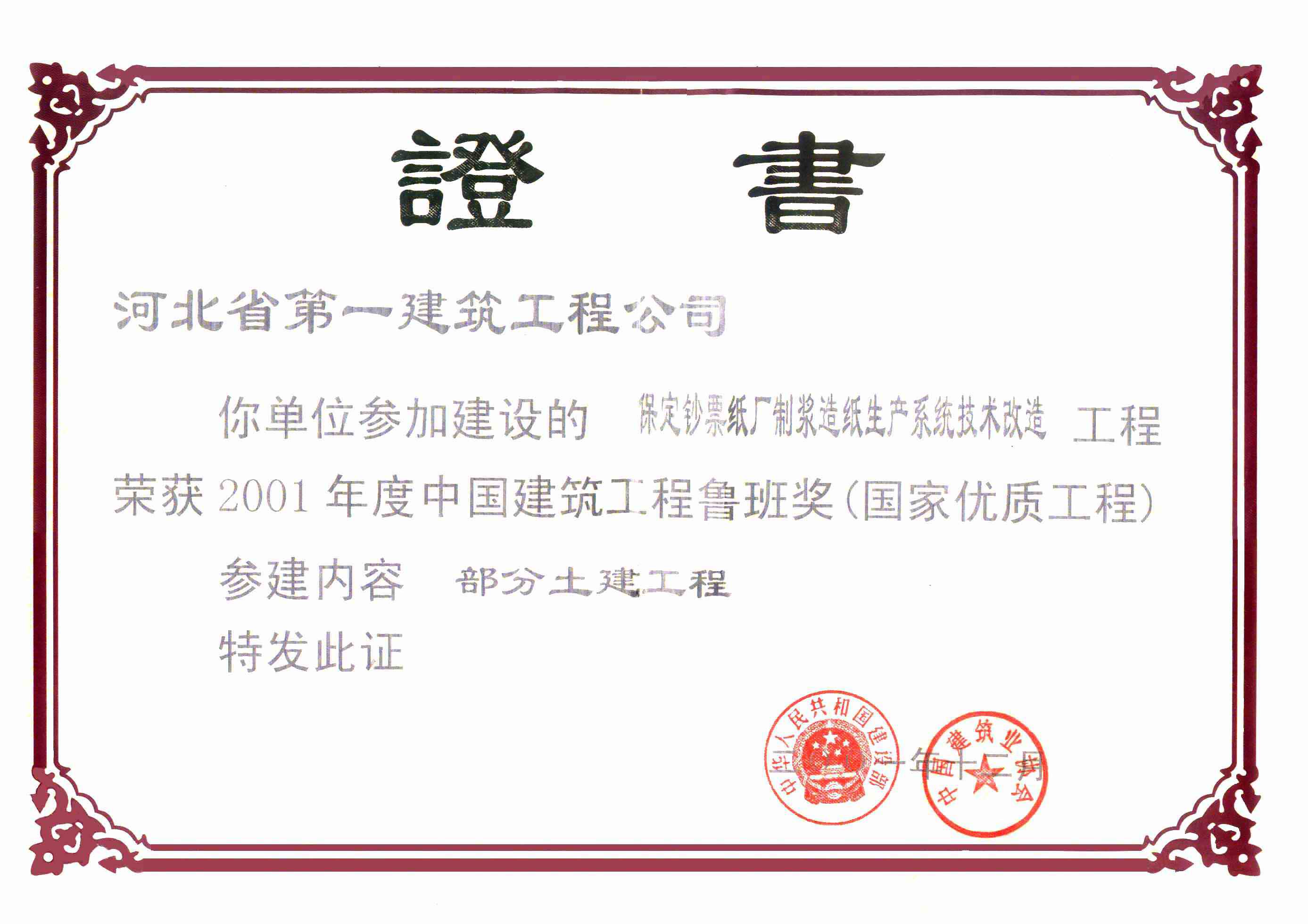 2001年度保定鈔票紙廠(chǎng)